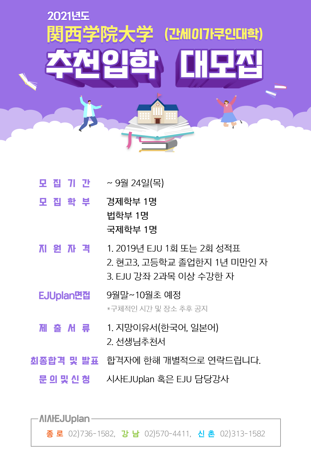 2021년도 関西学院大学(간세이가쿠인대학) 추천입학 대모집