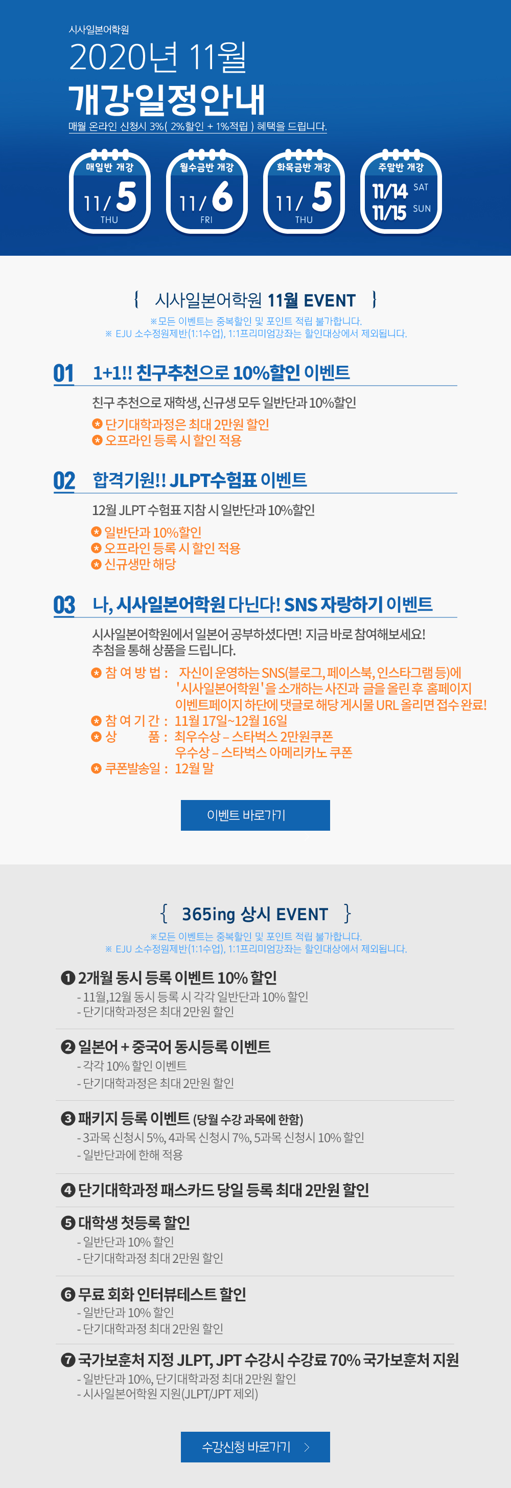 2020년 10월12일~ 대면 수업 시작! 늦어도 괜찮아! 일수할인 안내