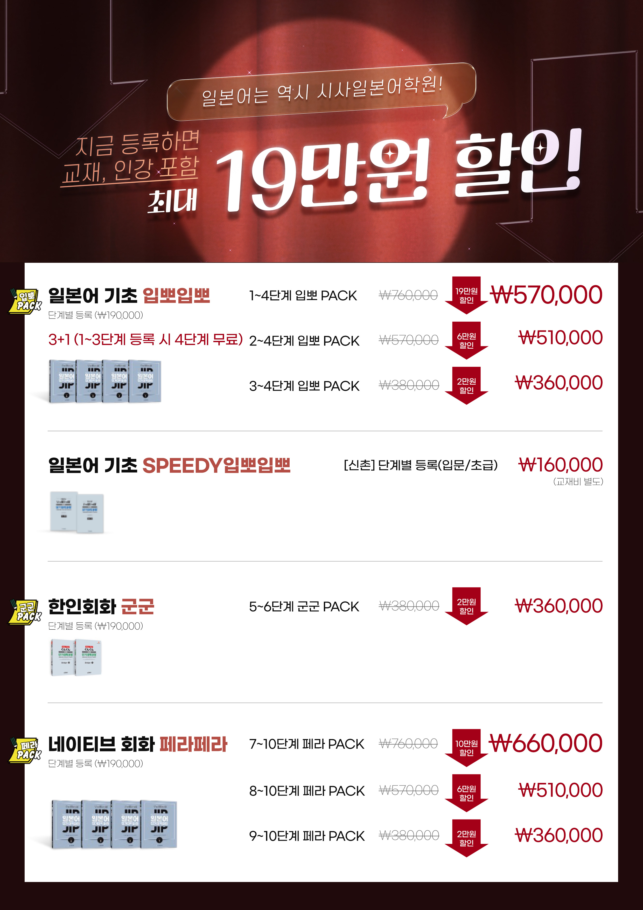 일본어는 역시 시사일본어학원! 교재, 인강 포함 최대 19만원 할인! 3+1이벤트 진행중!