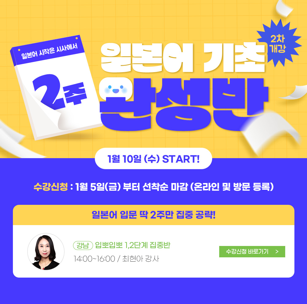 일본어 시작은 시사에서 2차 개강 일본어 2주 완성반 1월 10일 (수) start!