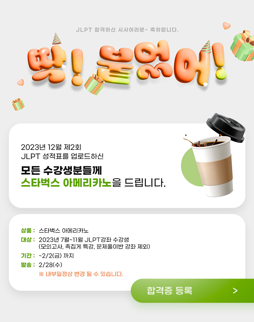 딱! 붙었어! JLPT 합격하신 시사여러분~ 축하합니다.