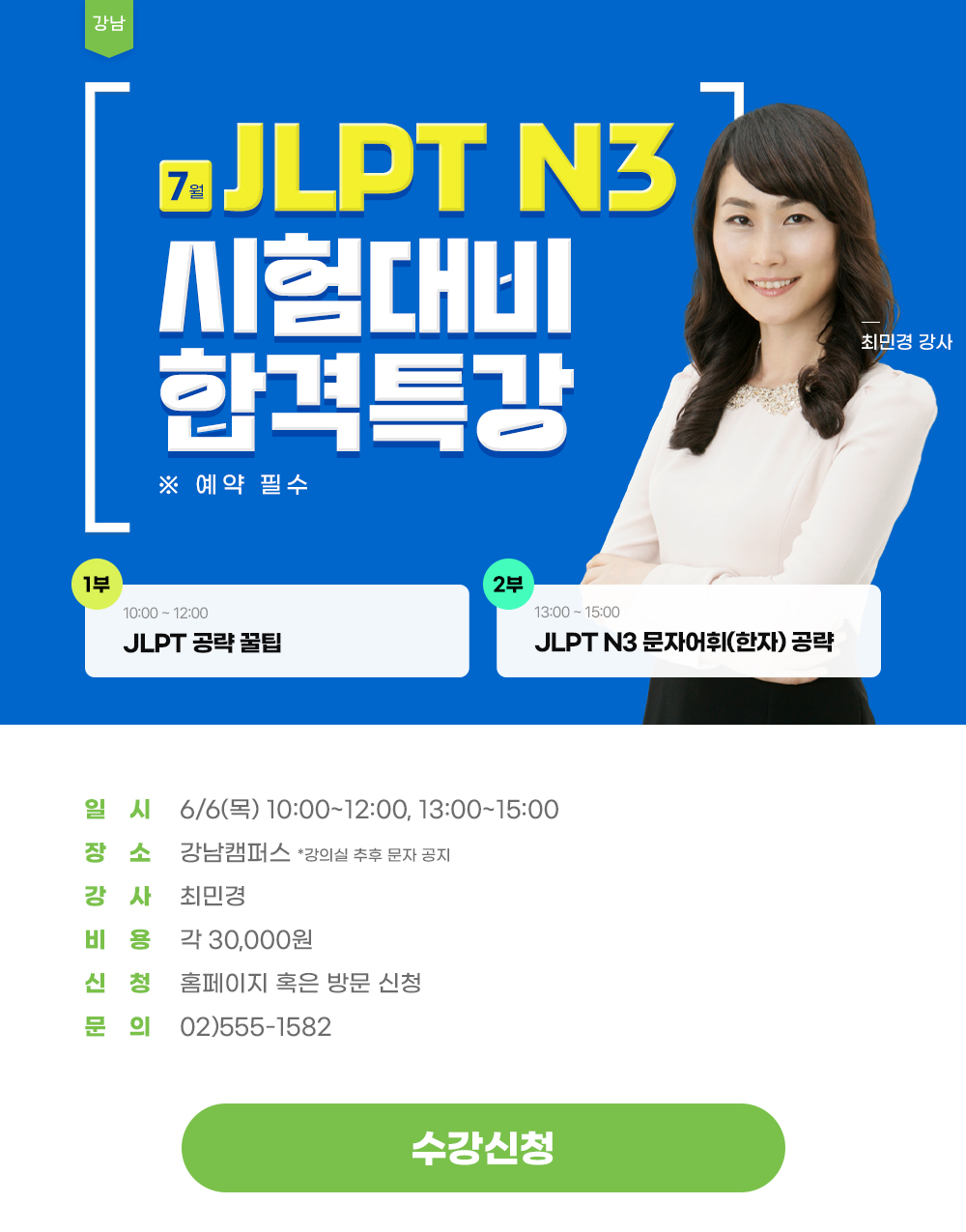 6/6(목) JLPT N3 합격특강(강남 최민경 강사)