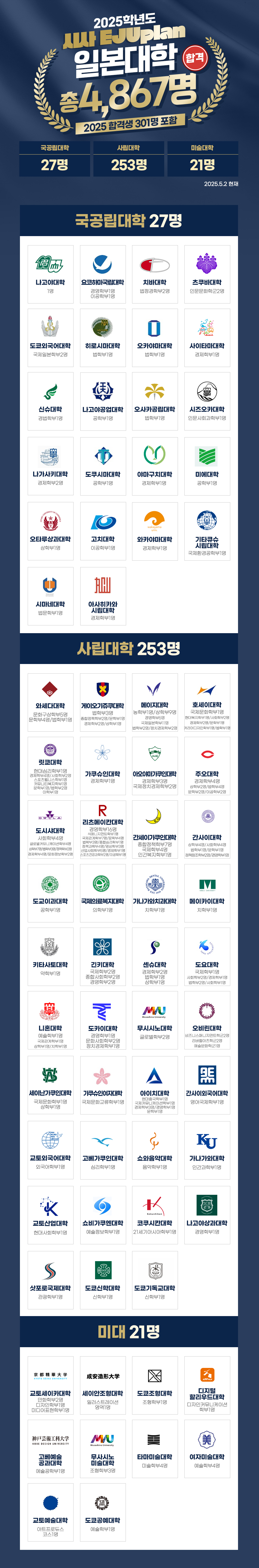 2025년도 일본대학 합격 축하합니다