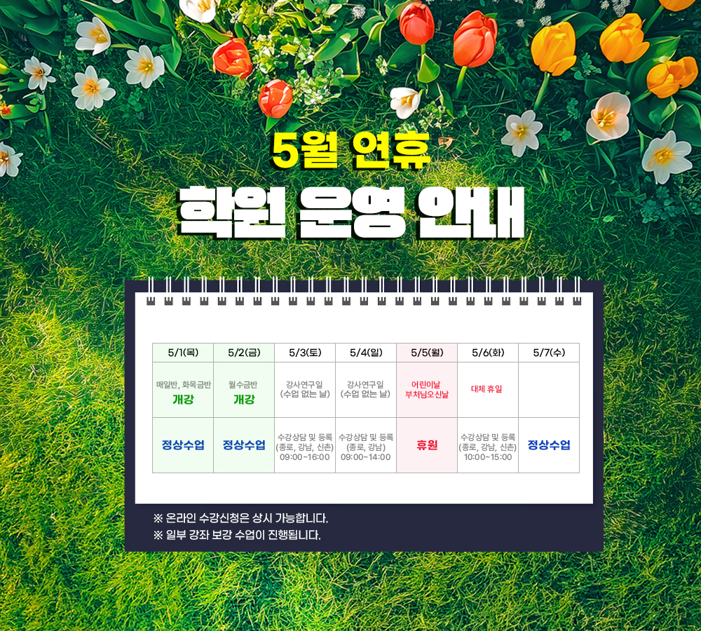 현장강의 들어보고 수강신청! 5월 강의 무료체험