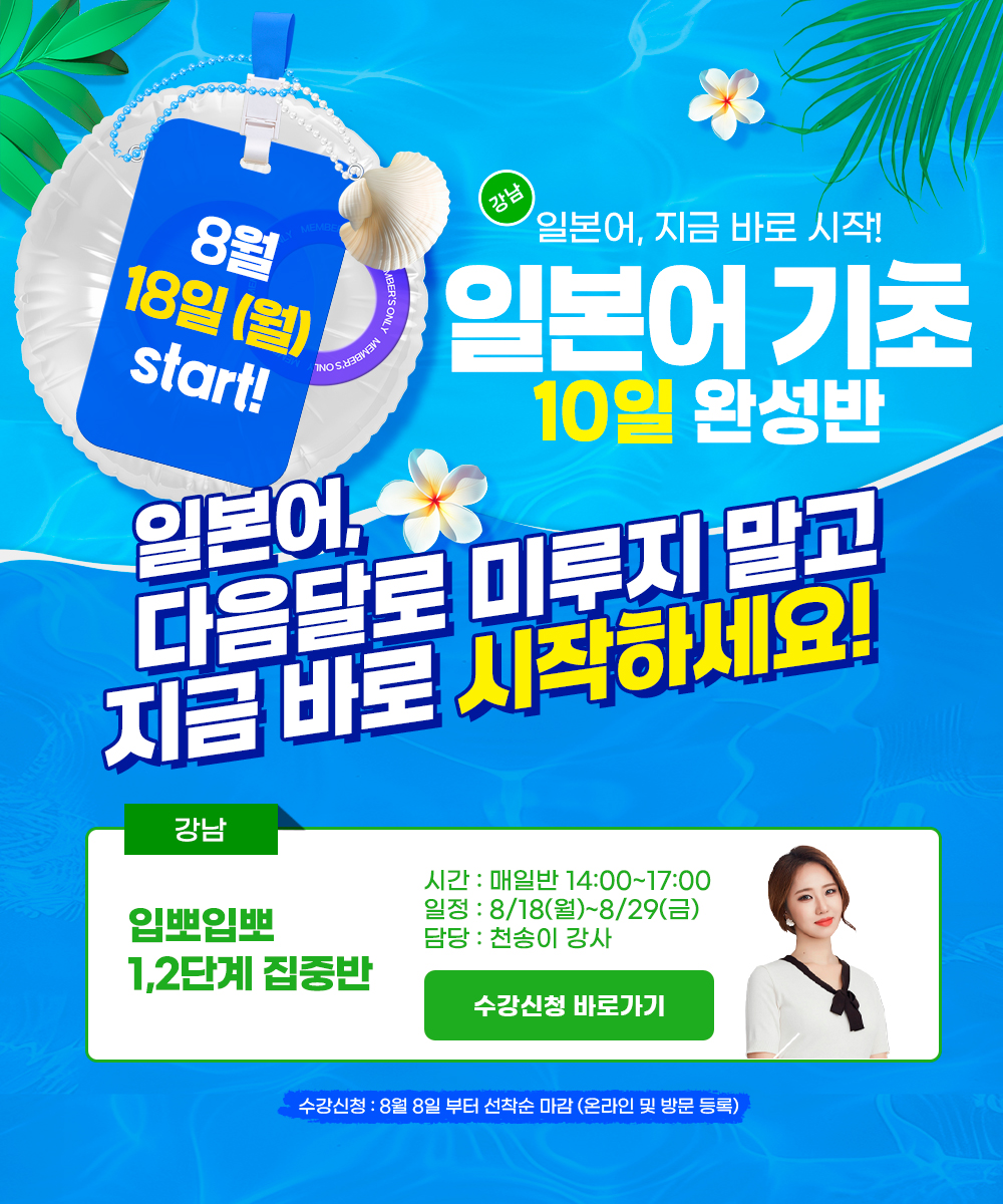 현장강의 들어보고 수강신청! 8월 강의무료체험