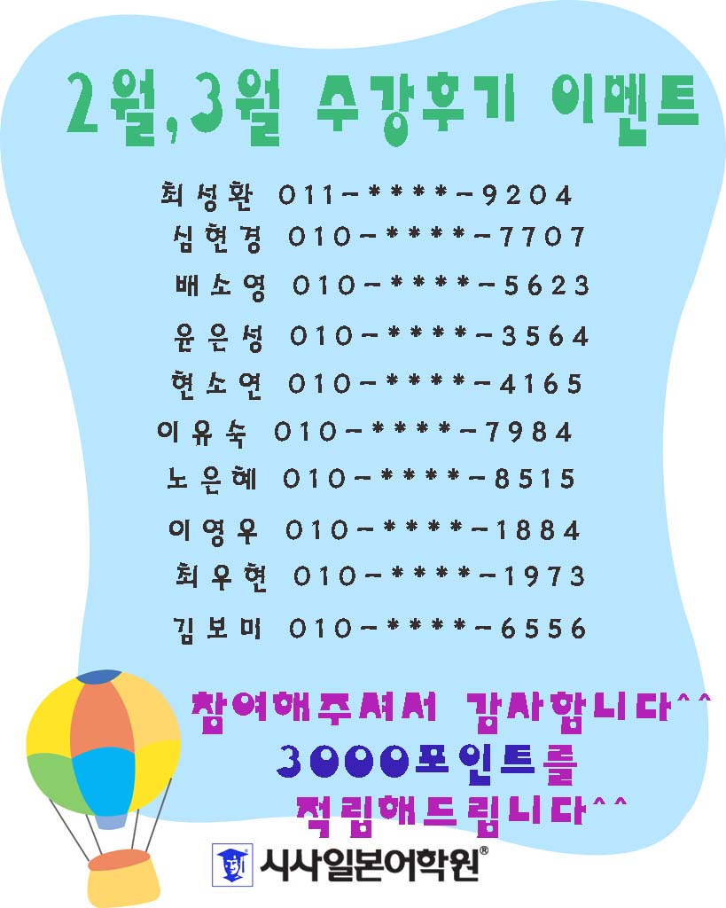 2월,3월 수강후기 이벤트 당첨자
