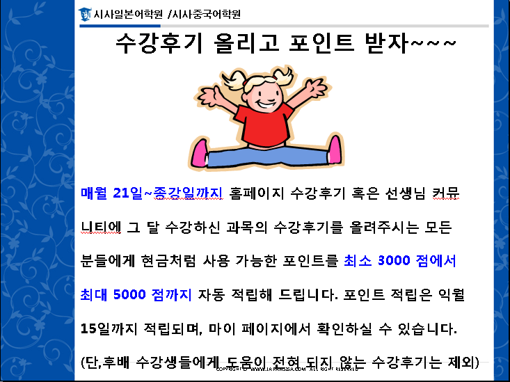 수강후기만 올려도 포인트가 팍팍 쌓인다~~~!!!