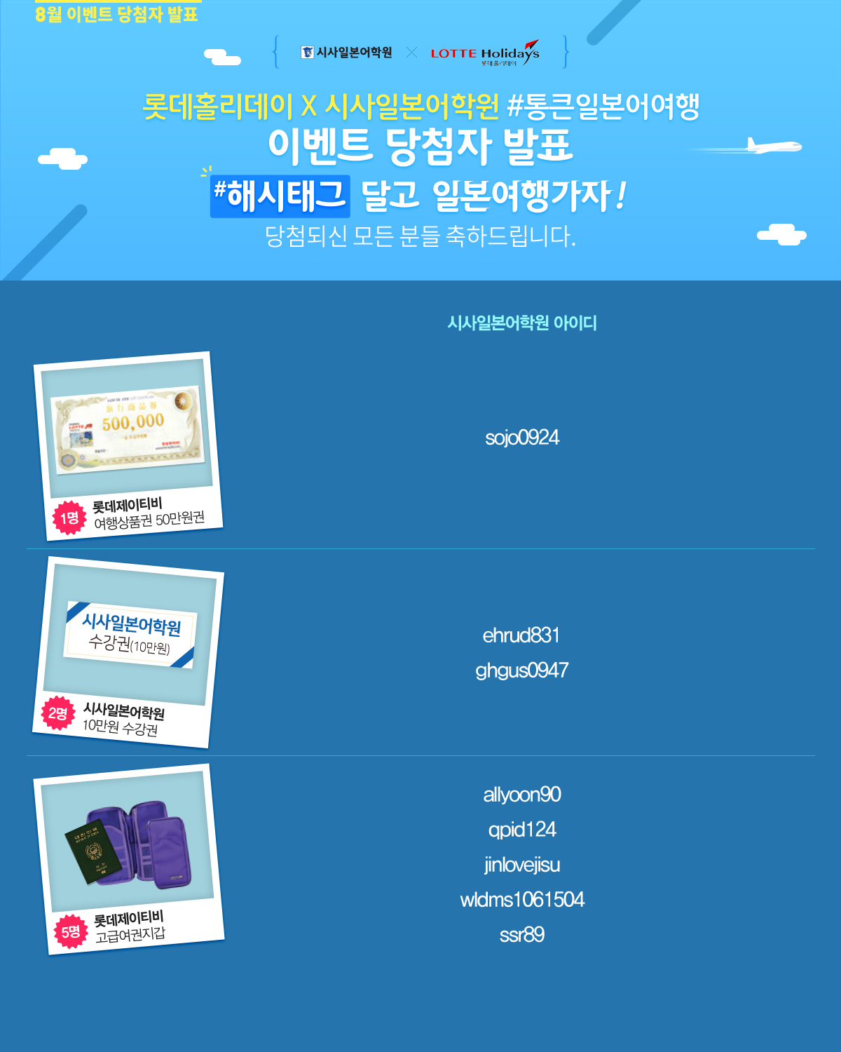 해시태그달고 일본여행가자! 당첨자 발표