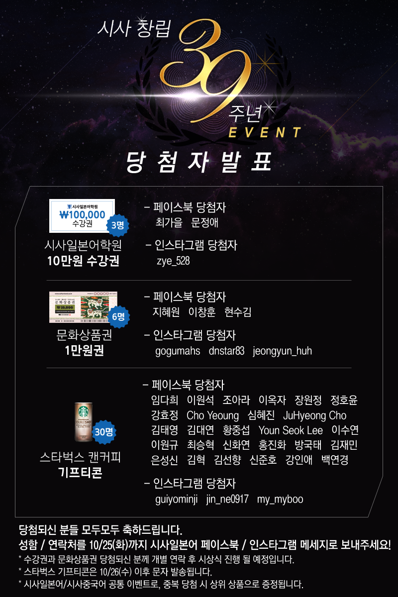 시사일본어학원과 나가사키 현이 뭉쳤다! 이벤트 당첨자 발표