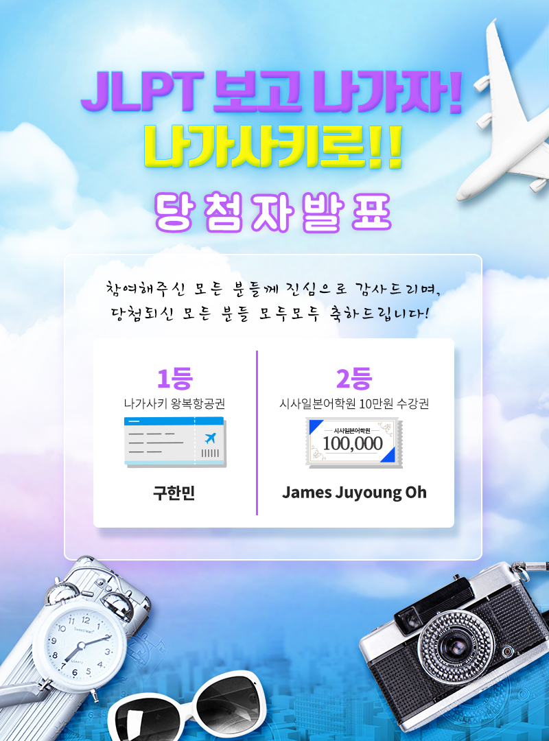 JLPT 보고 나가자! 나가사키로!! 항공권 이벤트 당첨자 발표