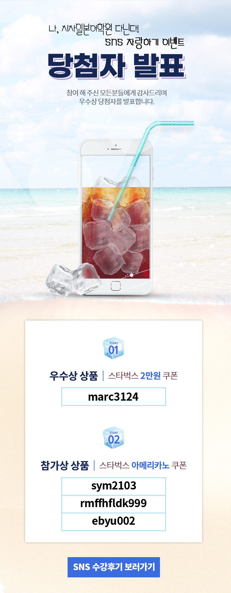 나, 시사일본어어학원 다닌다! 6월 SNS 자랑하기 이벤트 당첨자 발표