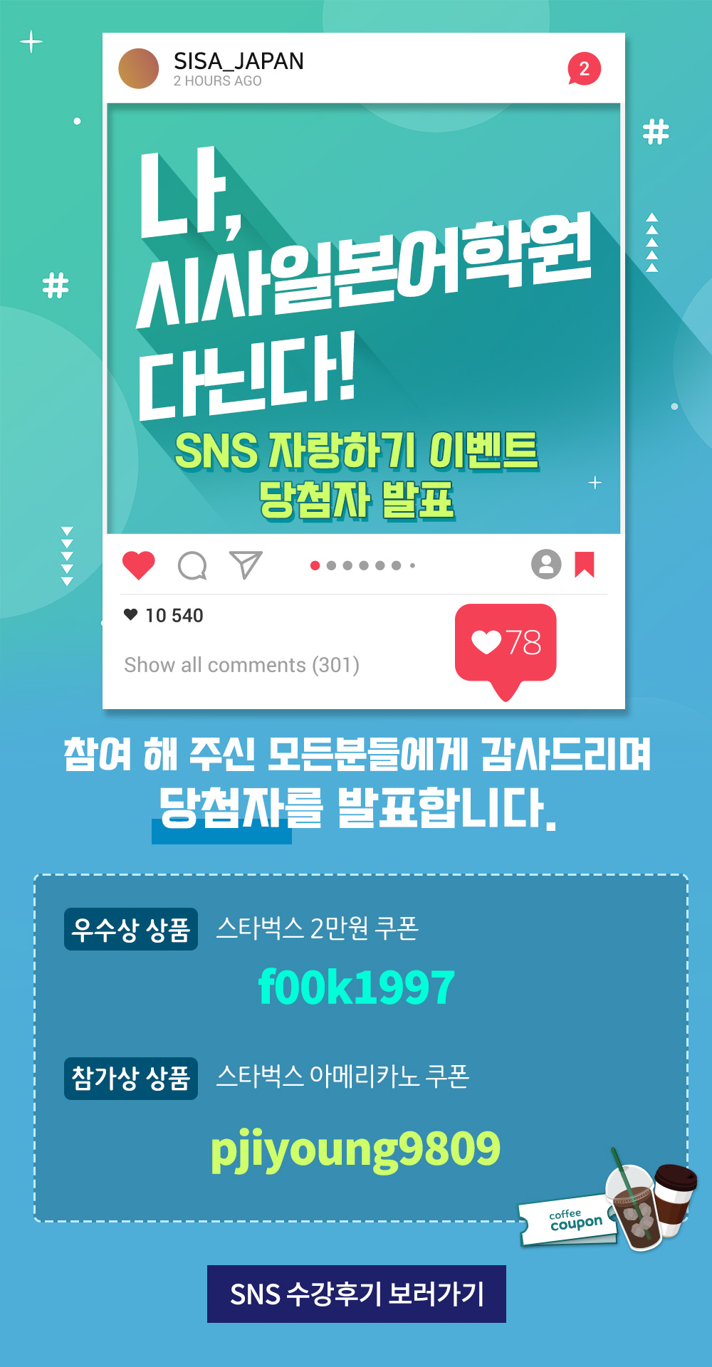 나, 시사일본어학원 다닌다! 2월 SNS 자랑하기 이벤트 당첨자 발표