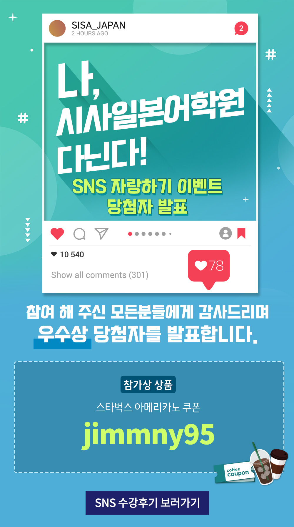 나, 시사일본어학원 다닌다! 2월 SNS 자랑하기 이벤트 당첨자 발표