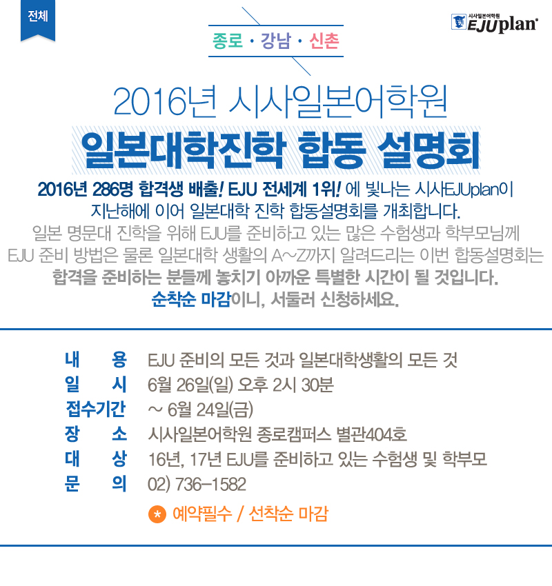 2016년 시사일본어학원 일본대학진학 합동 설명회