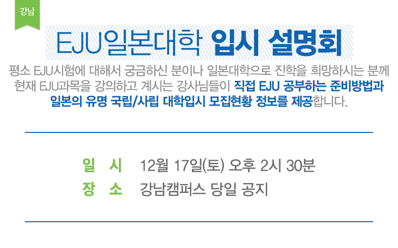 2016년 12월 EJU 일본대학 입시설명회 - 강남