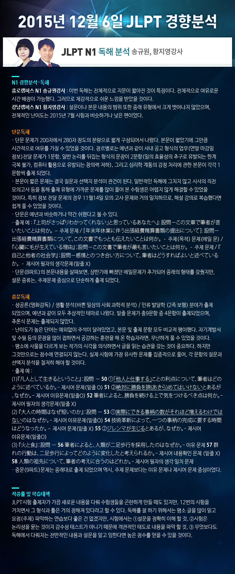 ★ 2015.12.6 JLPT 경향분석★ N1 독해 - 송규원, 황지영강사