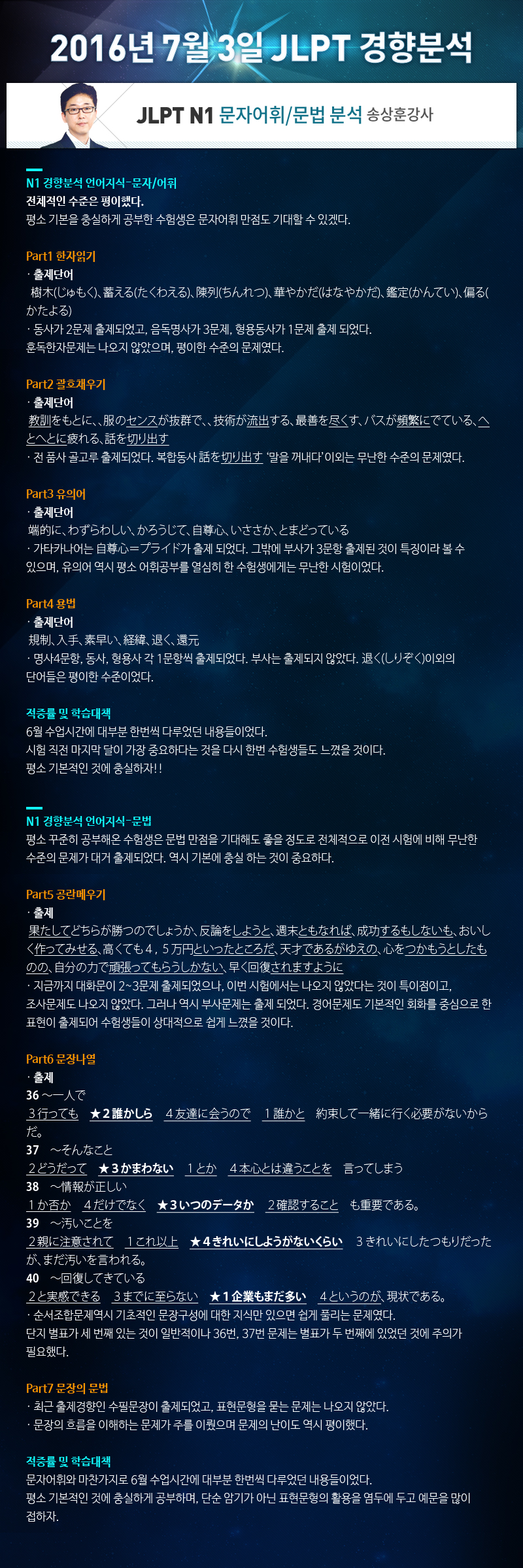 [ 2016.7.3 JLPT 경향분석 ] N1 문자어휘/문법 - 송상훈강사
