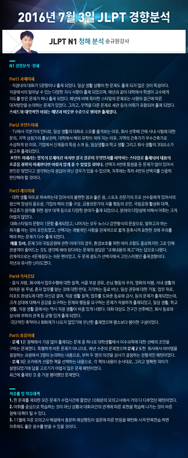 [ 2016.7.3 JLPT 경향분석 ] N1 청해 - 송규원강사