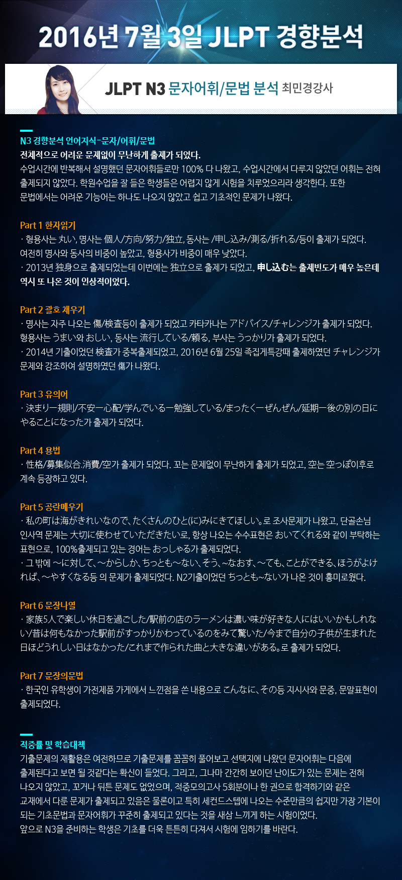 [ 2016.7.3 JLPT 경향분석 ] N3 문자어휘/문법 - 최민경강사