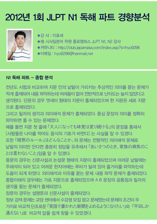 2012년 1회 JLPT N1 경향분석_독해