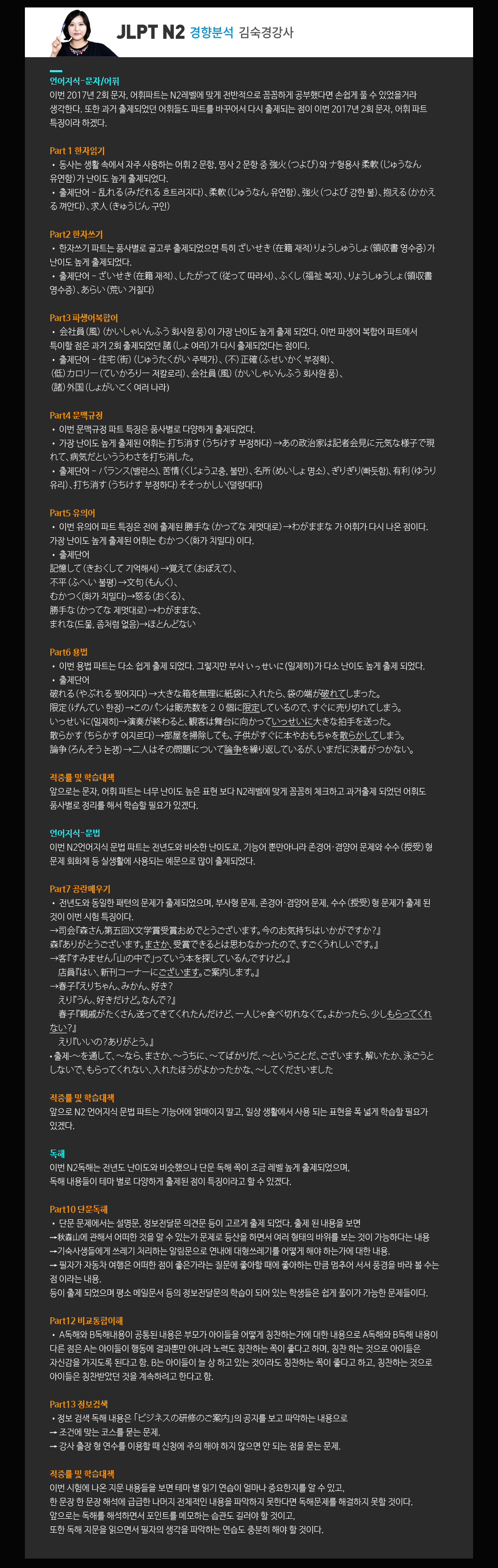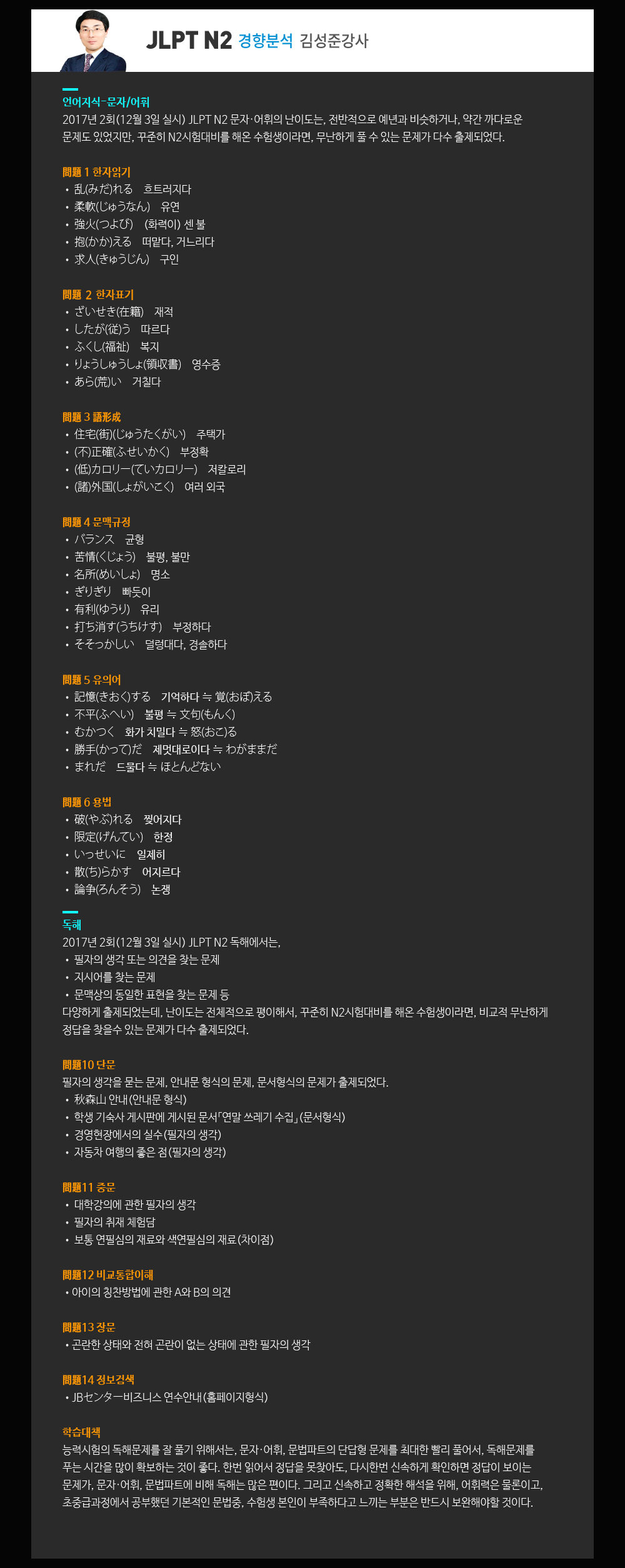 ★2017.12.3 JLPT N2 경향분석★