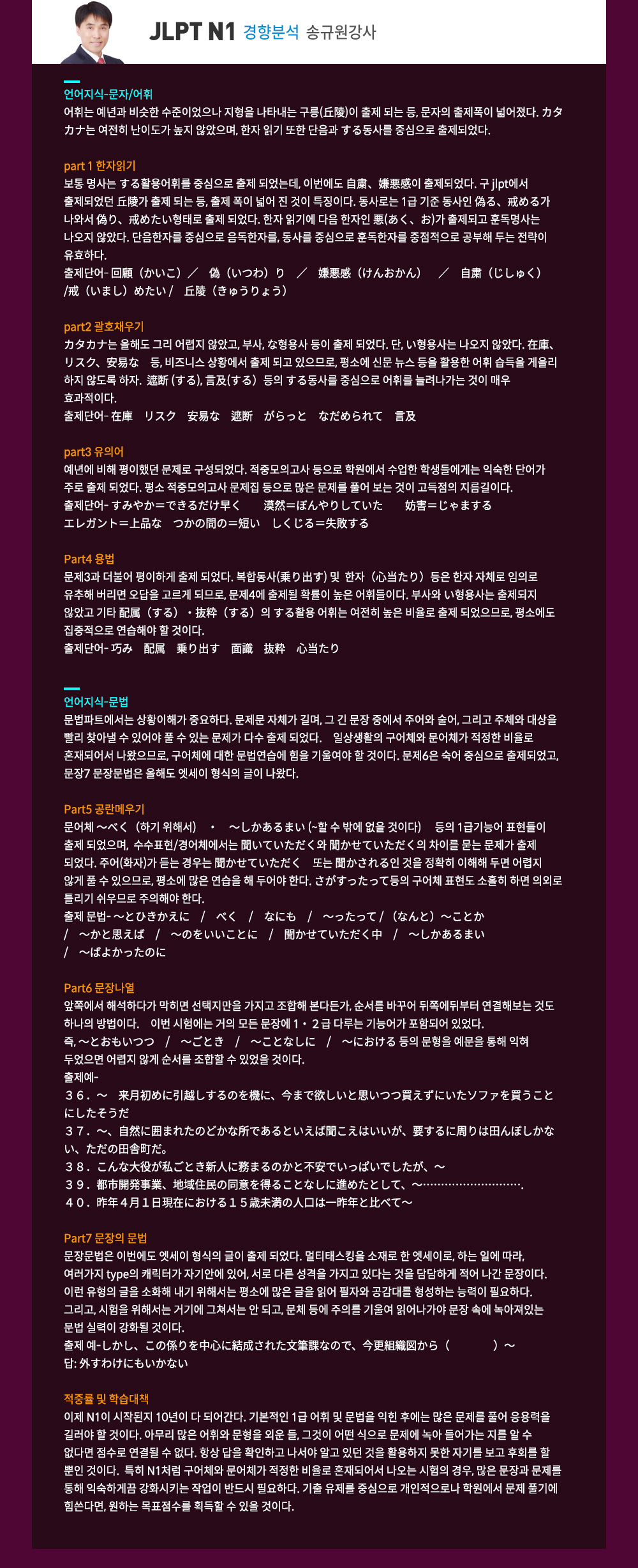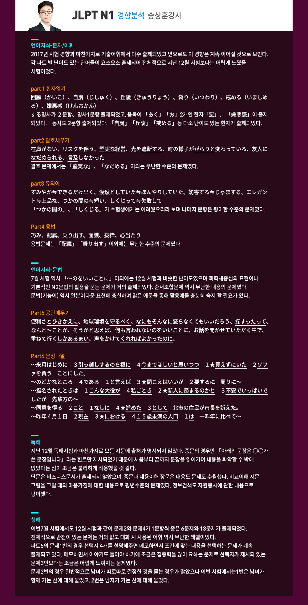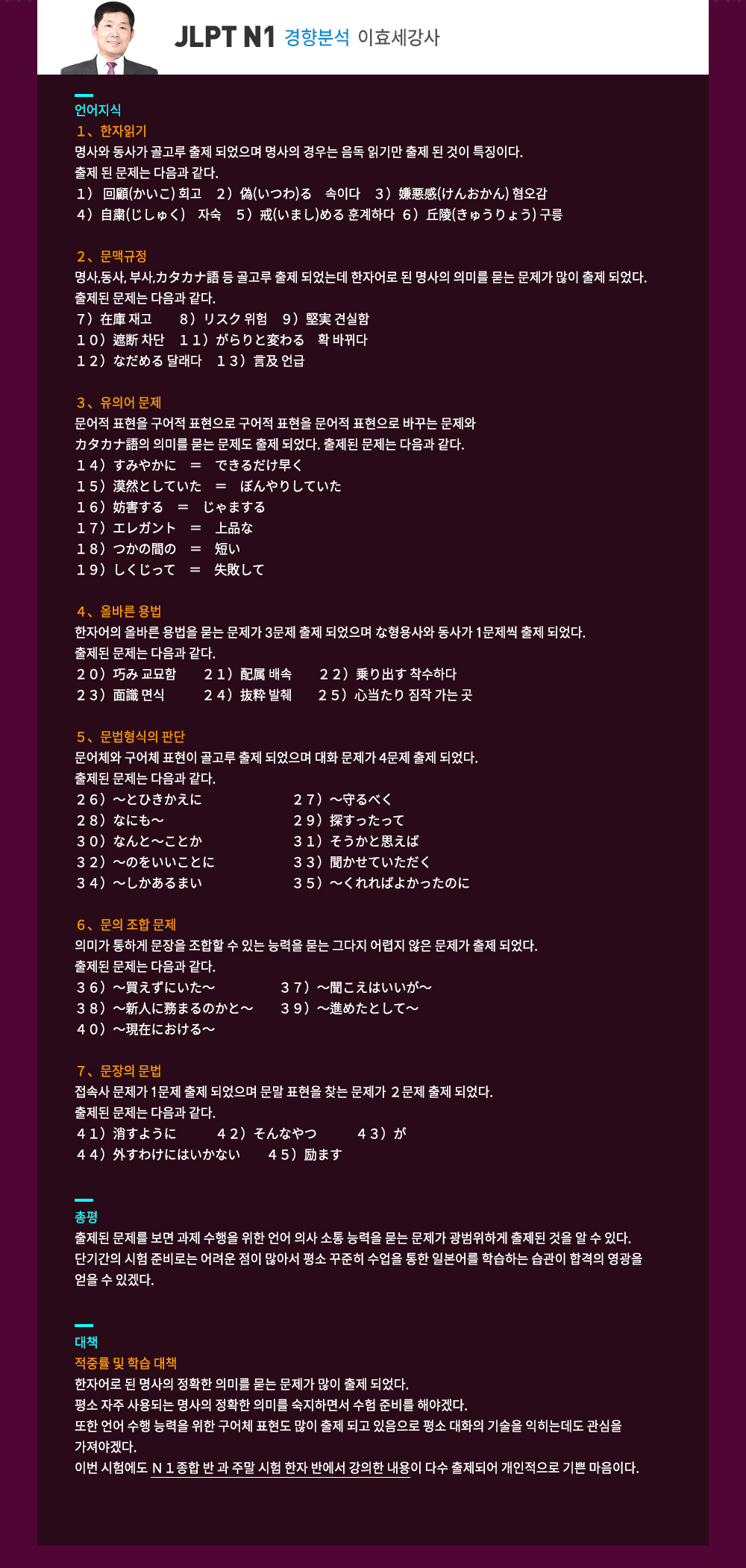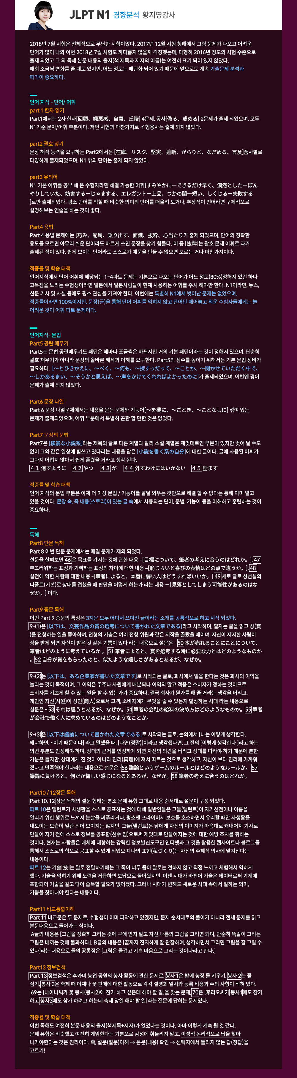 ★2018.07.01 JLPT N1 경향분석★