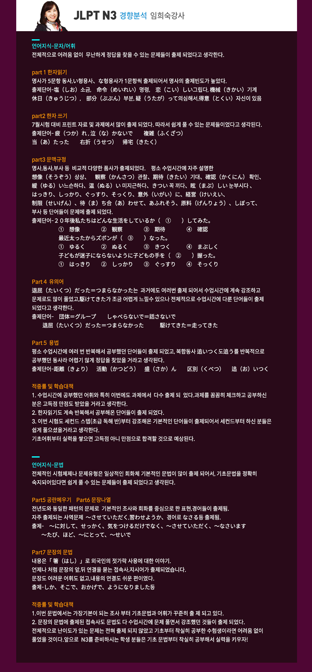 ★2018.07.01 JLPT N3 경향분석★