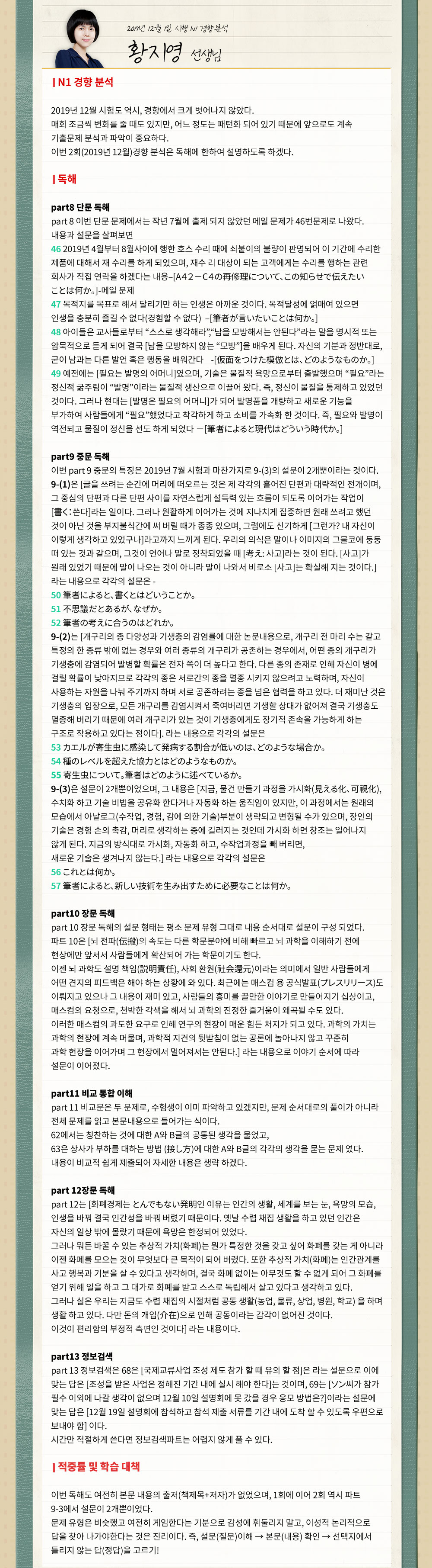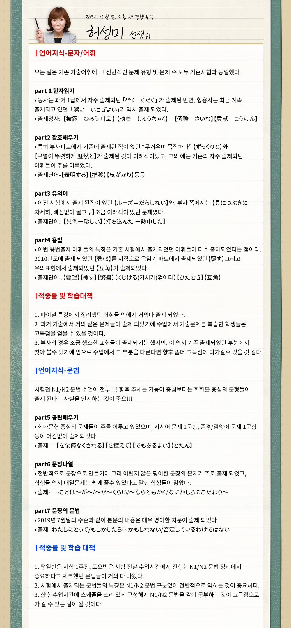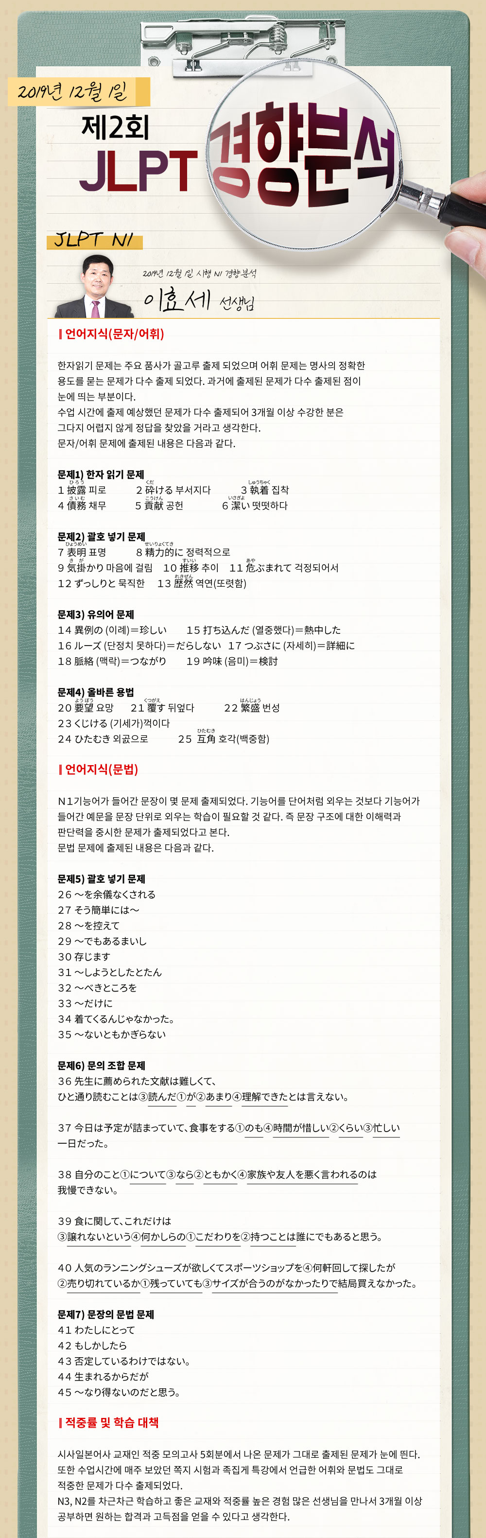 ★2019년 제2회 JLPT N1 경향분석★