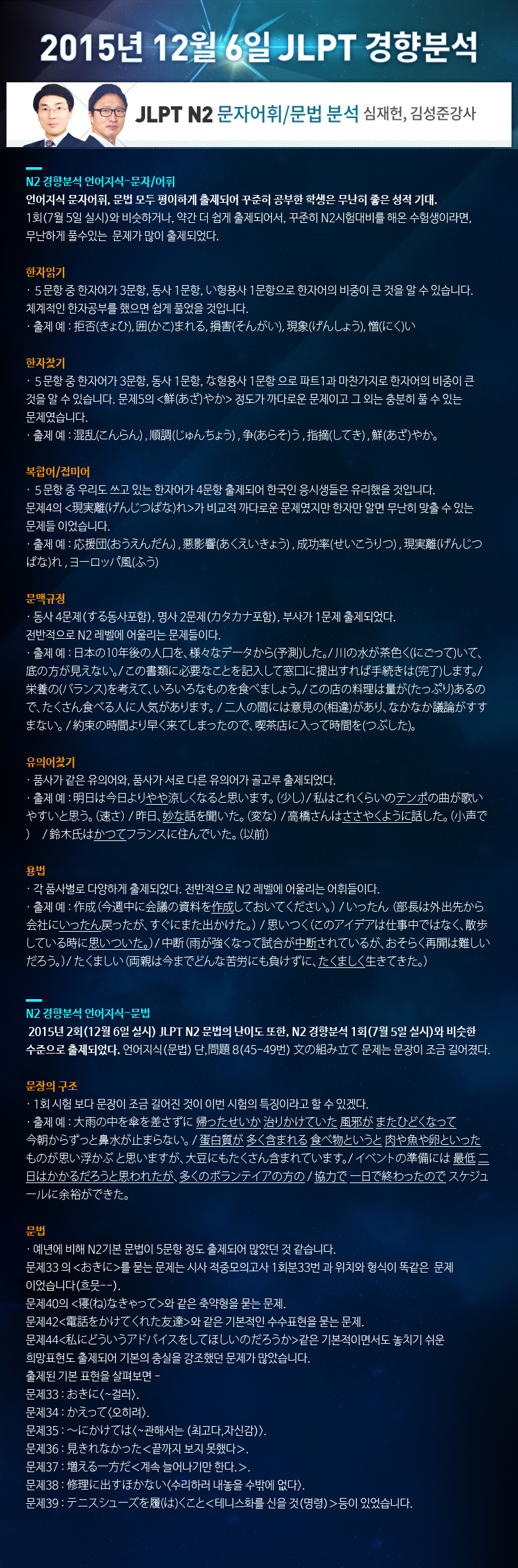 ★ 2015.12.6 JLPT 경향분석★ N2 문자어휘/문법 - 심재헌, 김성준강사