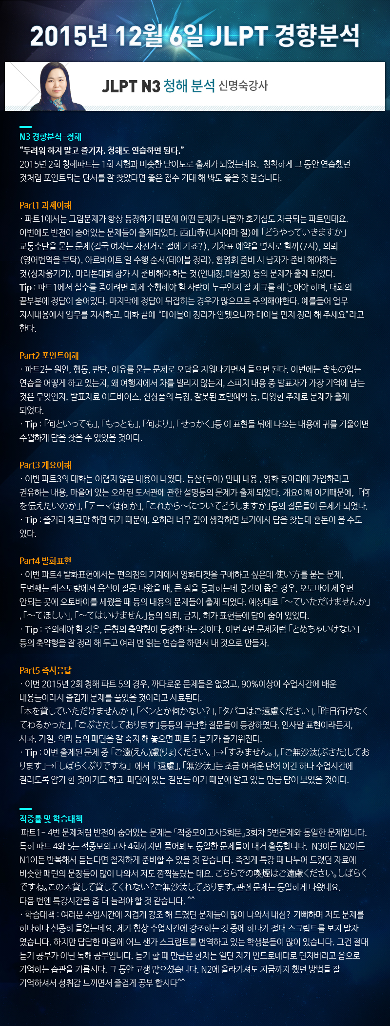 ★ 2015.12.6 JLPT 경향분석★ N3 청해 - 신명숙강사