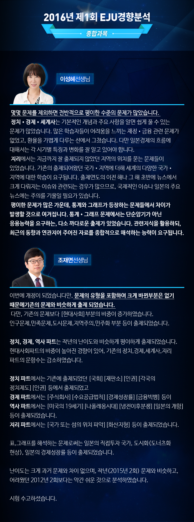 2016년 제1회 EJU경향 분석 - 종합과목