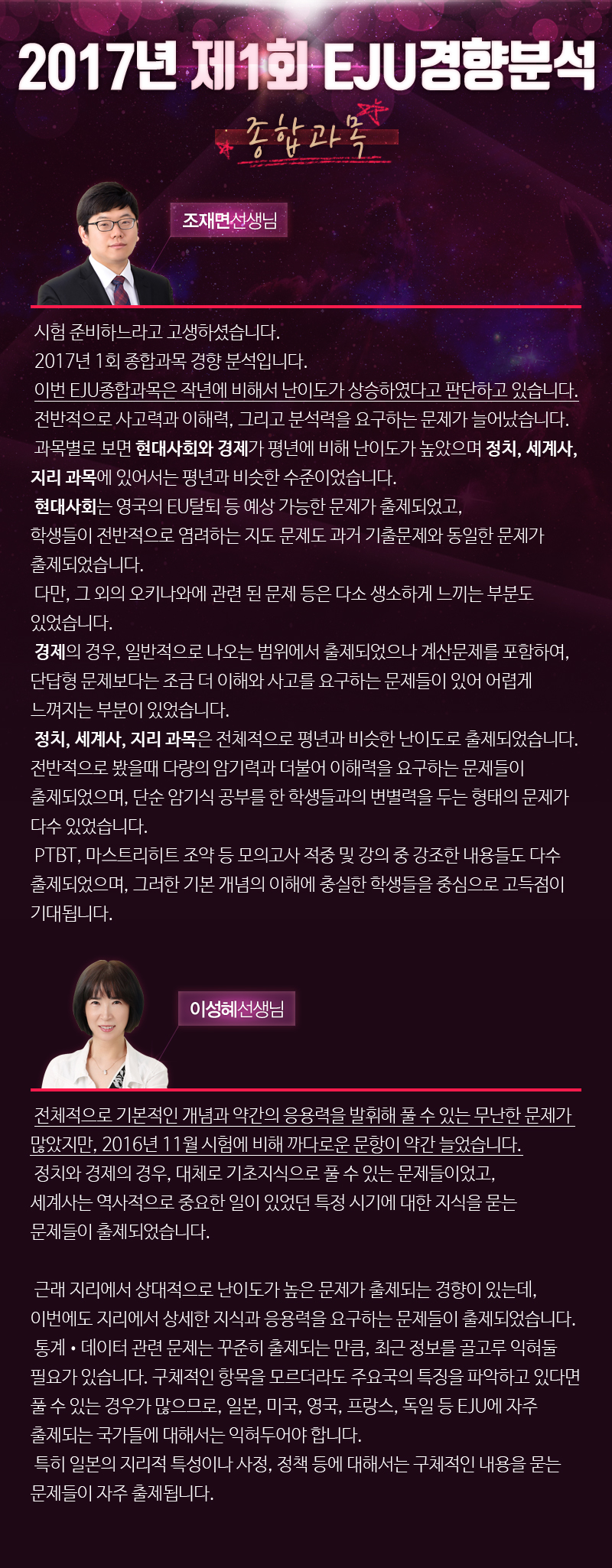 2017년 제1회 EJU경향 분석 - 종합과목