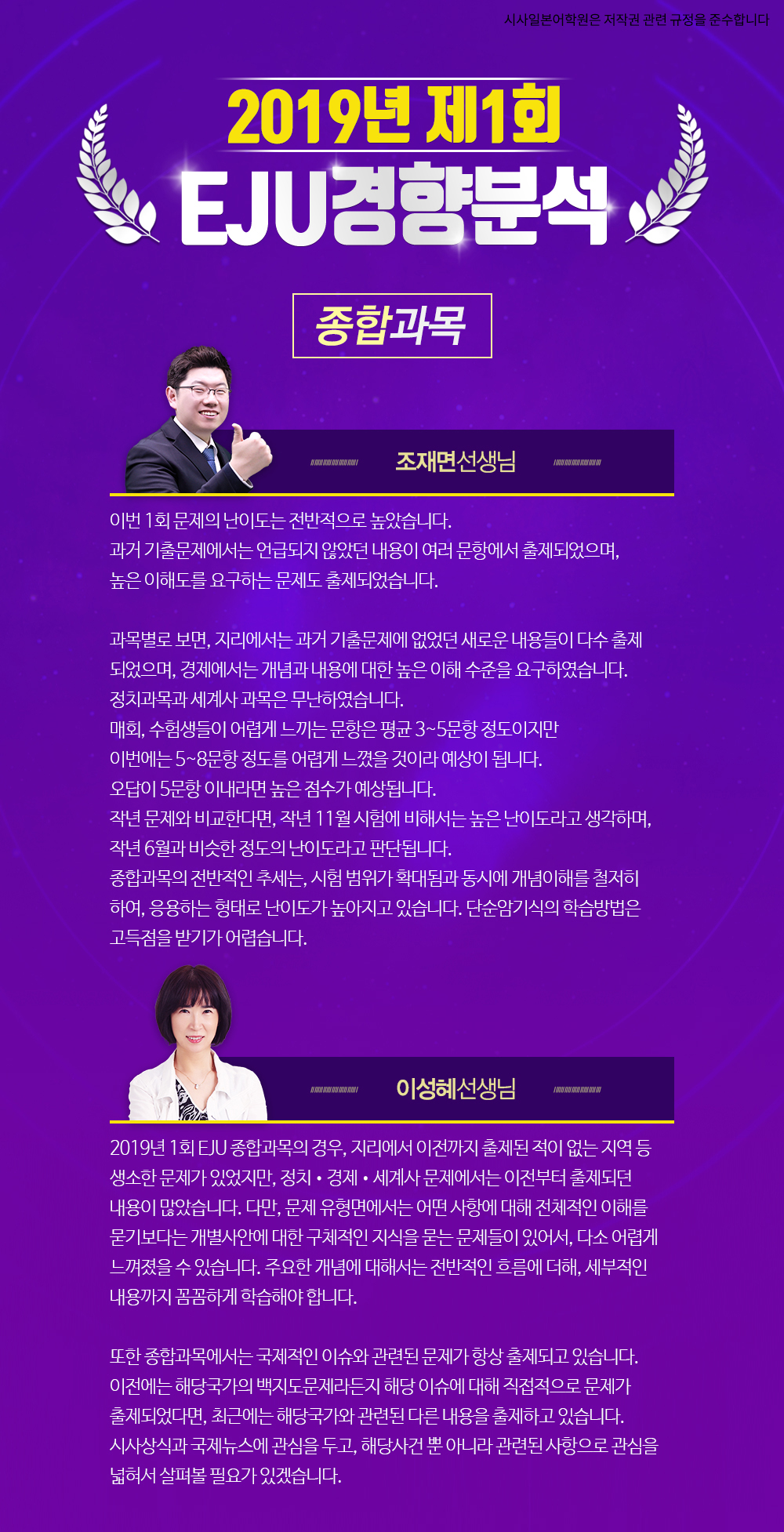 2019년 제1회 EJU경향분석 - 종합과목