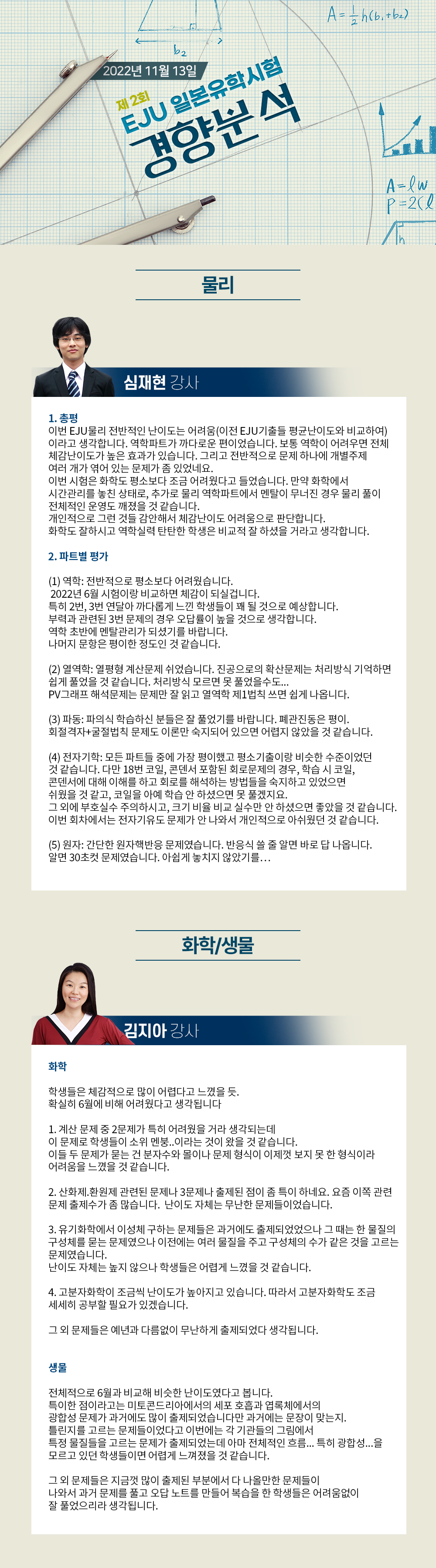 2022년 11월 13일 제2회 EJU 시험 경향분석-이과