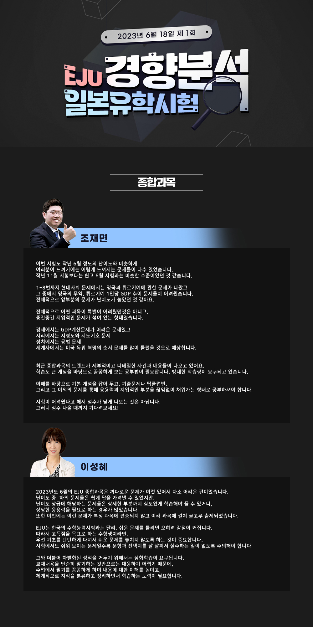 2023년 6월 18일 제1회 EJU 일본유학시험 경향분석 - 종합과목