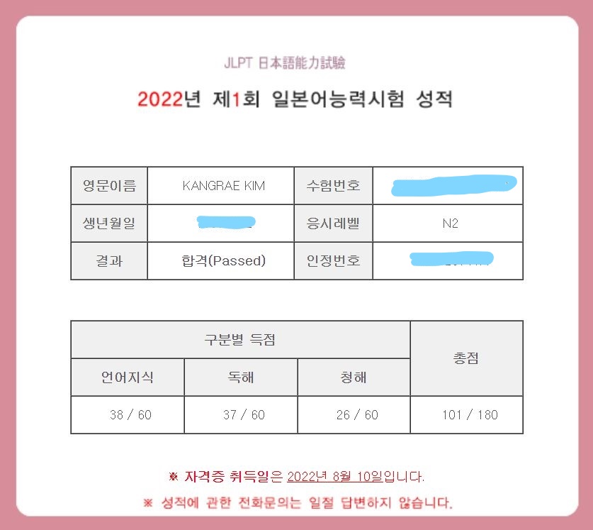 합격의 결과를 맛보게 됐습니다! 비록 저조한 점수지만