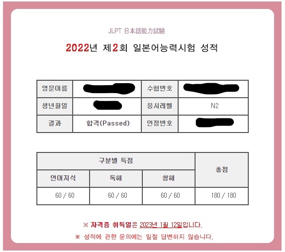 첫 JLPT 시험에서 무려 180점 만점! 이라는 성취를 해냈습니다. 사실 지금도 실감이 잘 나지 않지만요;) 물론 약간의 운도 따라주었지만 시험 후에도 틀려도 대여섯개 안팎이겠는데? 라는 자신감을 품게 해 줄 정도로, 고작 1개월만에 능력을 크게 향상시켜주신 우선희 선생님께 매우 감사드리고 있습니다.