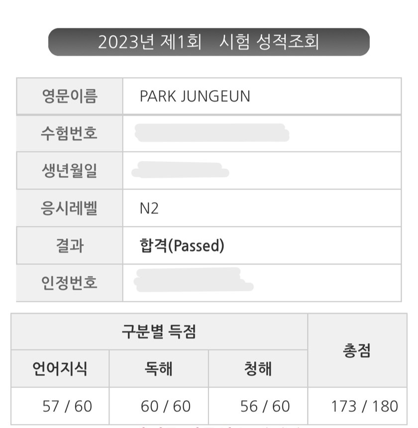 2023년 7월 JLPT N2 합격후기입니다!