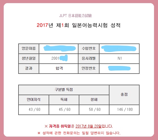 불안함도 있기는 했지만 그래도 결과 잘 나와서 안심했네요 N1,N2동안 신세졌던 길성준 선생님께 감사드립니다.