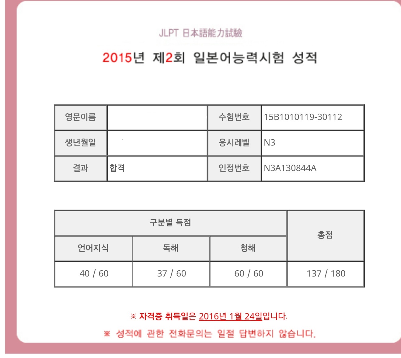 JLPT3급 합격후기입니다