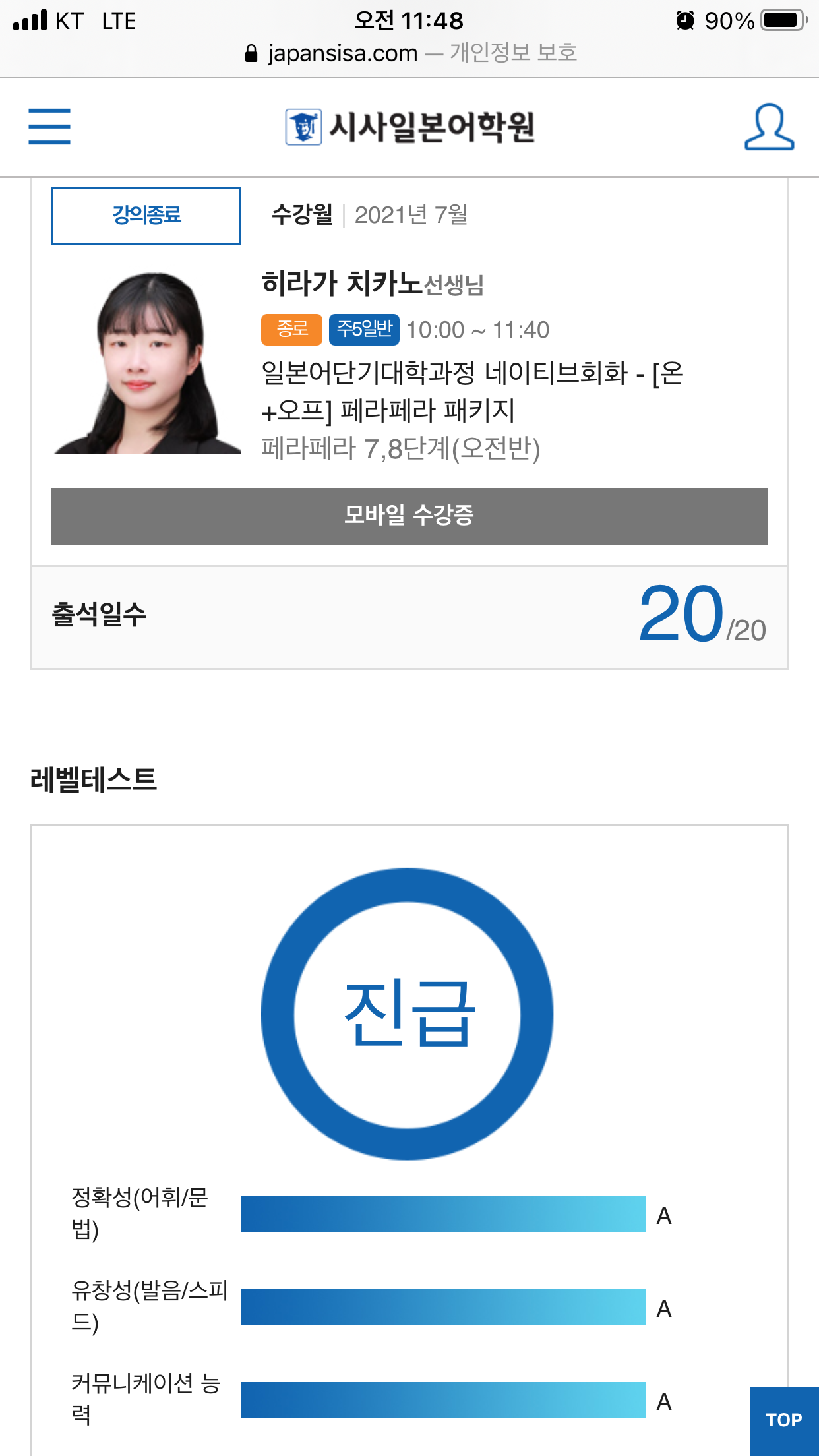 | 3468 | 종로 | JIP 네이티브회화 | 페라페라 패키지 - ·페라페라 8단계(화목금/패키지) | 히라가 치카노 |