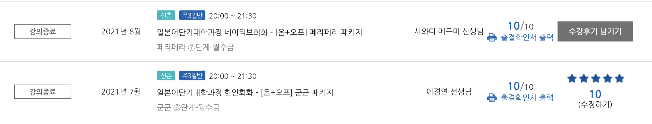 | 3460 | 신촌 | JIP 네이티브회화 | 페라페라 패키지 - 페라페라 7단계(월수금/패키지) | 사와다 메구미 |