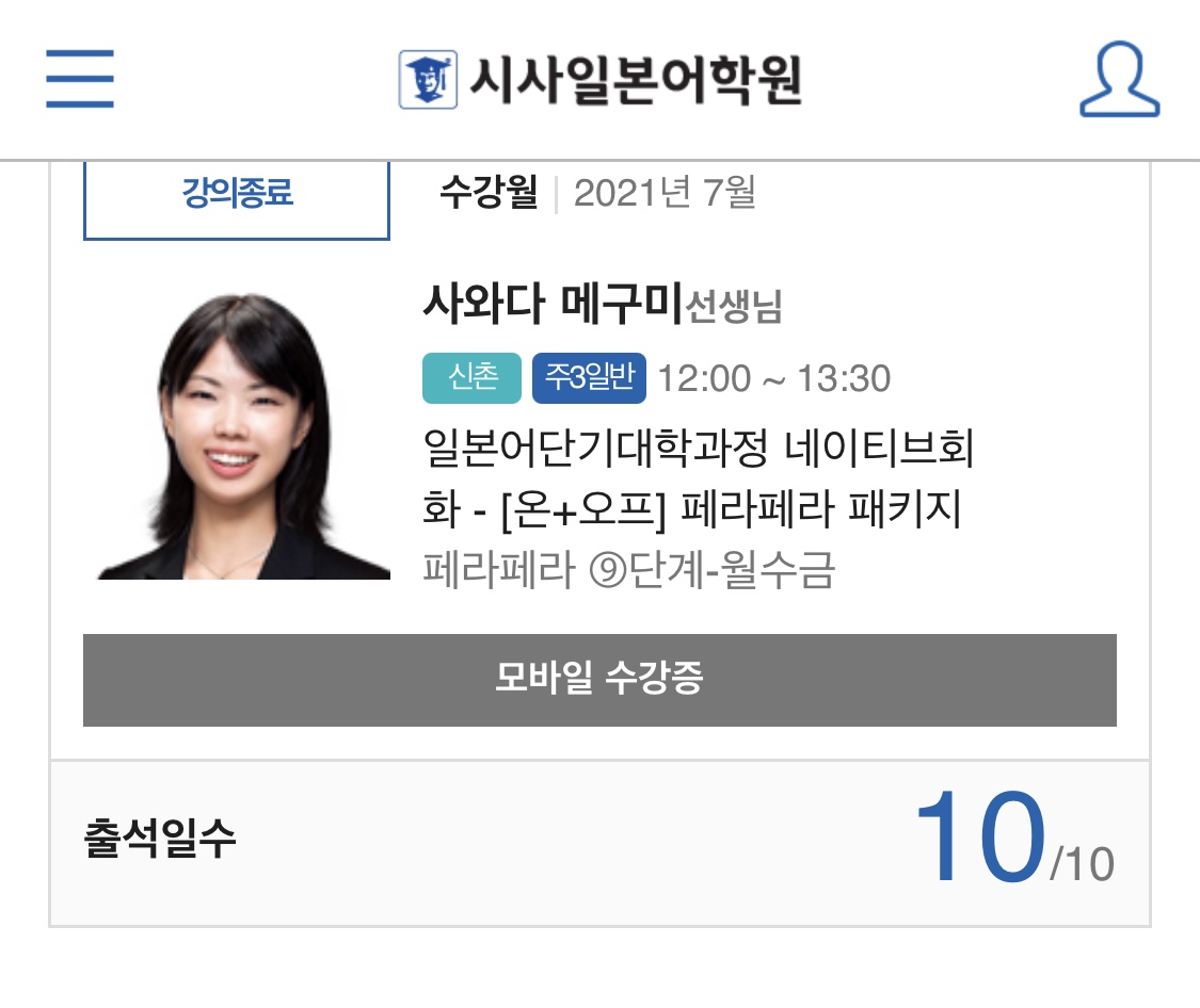 | 3449 | 신촌 | JIP 네이티브회화 | 페라페라 패키지 - 페라페라 9단계(월수금/패키지) | 사와다 메구미 |