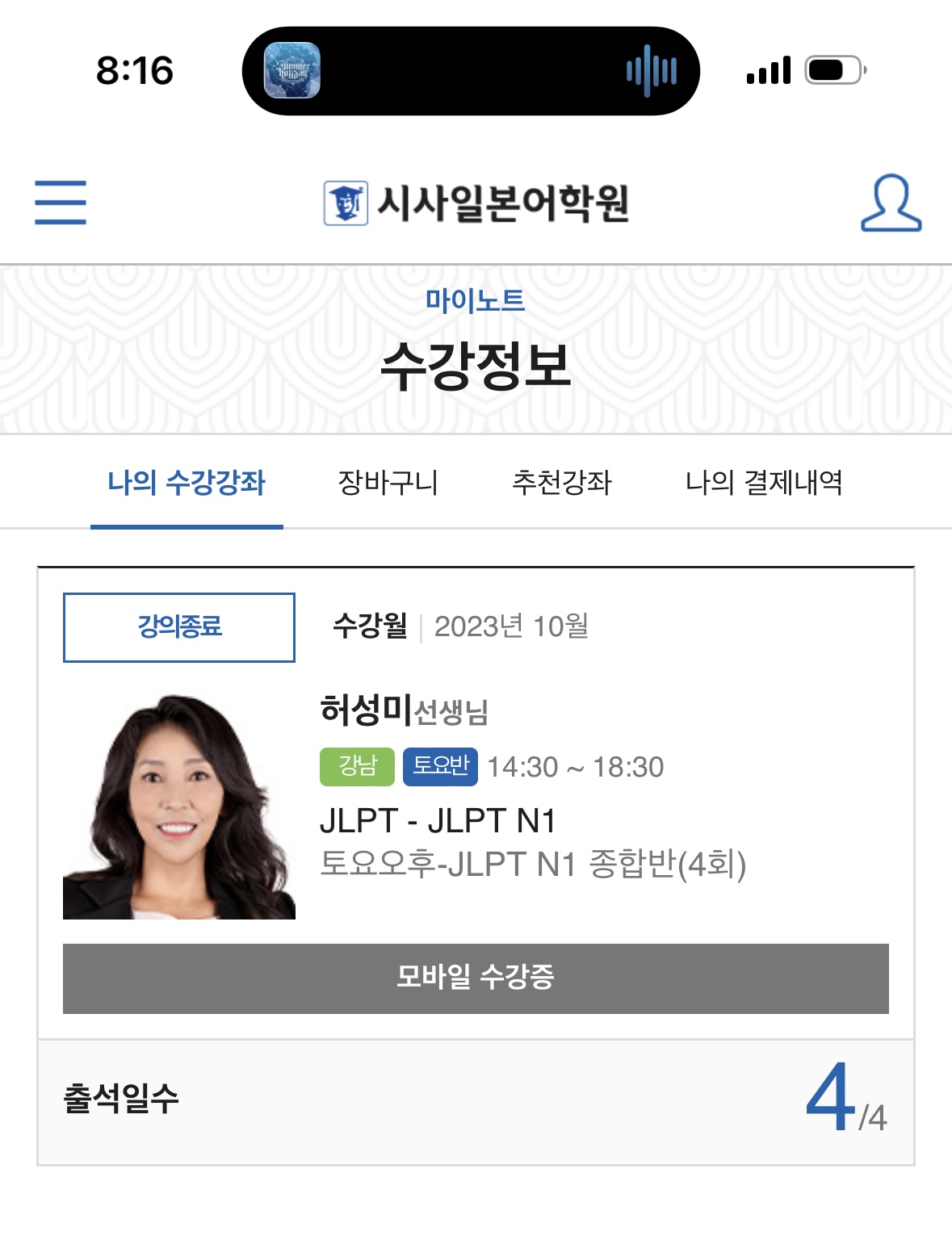 | 2036 | 강남 | 토요반 | JLPT - 토요오후-JLPT N1 종합반(4회) | 허성미 |