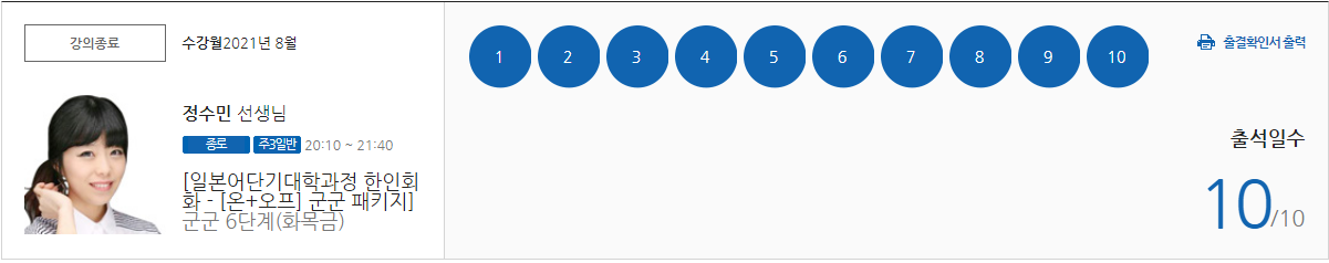 | 2665 | 신촌 | JIP 한인회화 | 군군 패키지 - 군군 5단계(화목금/패키지) | 이경연 |