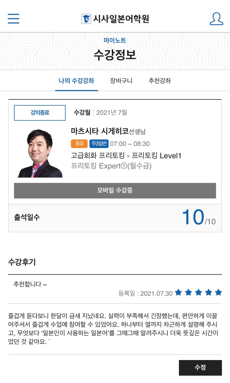 일본어회화전문가! 시사일본어학원 프리토킹 과정!
