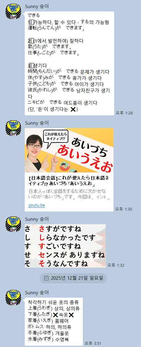 | 1098 | 종로 | 일요반 | 쉬운 일본인 회화 - 일요반-쉬운 일본인 회화(4-홀)(4회) | 후쿠요 하루나 |