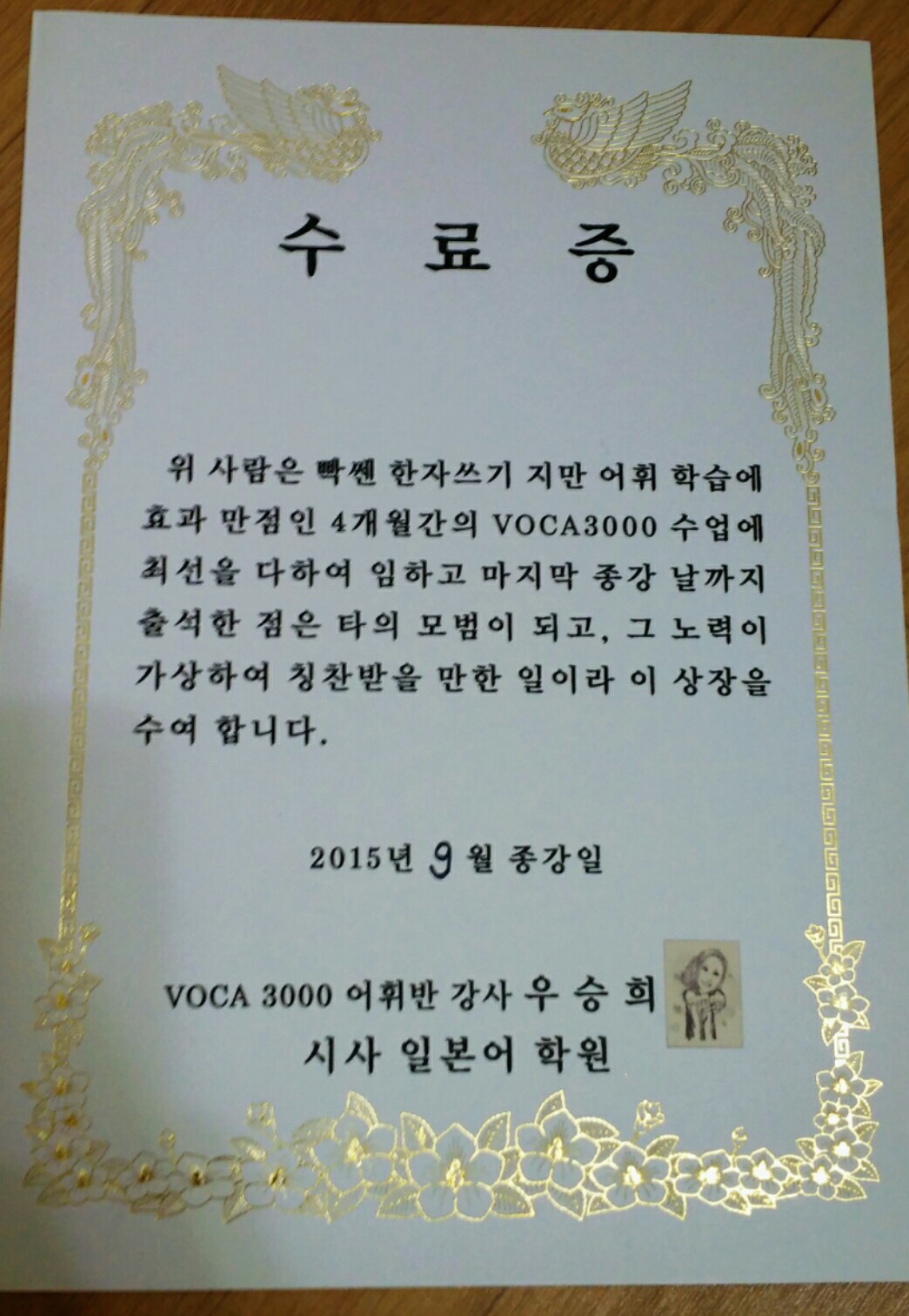 저는 현재 고등학교 2학년에 재학중인 한 여학생입니다 !! 이 수업을 시작했을때가 6월이였는데.... 사실 일본어는 학교에서 배우고 있었지만 '거의 처음 배우는것들 뿐이다'라는 생각이 들 정도로 실력이 엄~~청 부족했고, 한자는 물론이고 표현, 단어 모든 면에서 누가봐도 완전히 그냥 아는게 없어보이는 초짜...초급인 실력이었습니다...ㅠㅠ 그때 N4정도 실력이였고 N3를 아주 차근 차근 알아갈 때였습니다..... 정말 많이 부족할 때였죠.....ㅎ허허ㅎㅎ '단어를 먼저 알아야 독해라도 하겠지?'라는 생각에 이 강의를 수강하기 시작했는데 선생님께서 4개월 동안 3000개 정도 넘는 단어를 알려주시고 수업 중간 중간에 헷갈려 할 만한 문법을 많이 알려주실 뿐더러 회화표현, 신종어, 한자의 음독, 훈독 등 굉장히 폭넓게 일본어를 가르쳐 주셨습니다. 심지어 사전에도 안나오는 유용하고 희귀한 표현까지~ 기초부터 심화까지 골고루 다 섭렵할 수 있게끔 쭉 가르쳐 주셨습니다!! 선생님 수업 덕분에 N4도 헤맸던 제가 !!!! 물론 다 알지는 못하지만 지금은 N1에 나오는 단어를 조금씩 알 정도로 많이 늘었고, 또 처음보는 한자이더라도 '이렇게 읽겠구나'라고 예상하고 ! 또 맞출 수 있게 되었습니다!! 4개월 전에 정말 가망, 희망이라고는 보이지 않던 제게 지금은 정반대가 되었습니다!!! 단어만 쓰고 배우는 시간이라 지루할 줄 알았지만 예상과는 다르게 수업시간도 정말 재밌었습니다ㅋㅋㅋ 선생님과 학생들이 서로 얘기를 하면서 단어도 익히고 에피소드도 공유하고 솔직히 선생님 진짜 호탕하고 웃깁니다 ㅋㅋㅋㅋㅋㅋㅋㅋㅋㅋㅋㅋㅋ (한때 개그우먼이 꿈이셨다고......) 선생님께서 자신감도 많이 주시고 응원도 해주셔서 저는 더 즐겁게 수업을 들을 수 있었던 것 같습니다~~~ 아무튼 재미와 실력 둘다 잡고 싶으신 분들 !! 그것도 단기간에 잡고 싶으신 분들에게 정말 강력히 추천합니다 !!!!!!!!!!!!!!!!!!!!!!!!!!!!!!! 4개월 쭉 강의를 듣고 종강하는 날 수료증 수여식도 있습니다ㅋㅋㅋ 이왕 강의 들으시는거 4개월만 참고 들어보세요!! 분명 달라질겁니다.....(비장) (이 강의 안들었으면 저... 아직도 N4하고 있을지도 몰라요.....) 아무튼 진짜 우승희 쌤 짱 !!!!!!!!!!!!!!!!!!! >_< 쌤 N1 붙으면 꼭 다시 찾아갈게요ㅎㅎㅎ お疲れ様でした♥