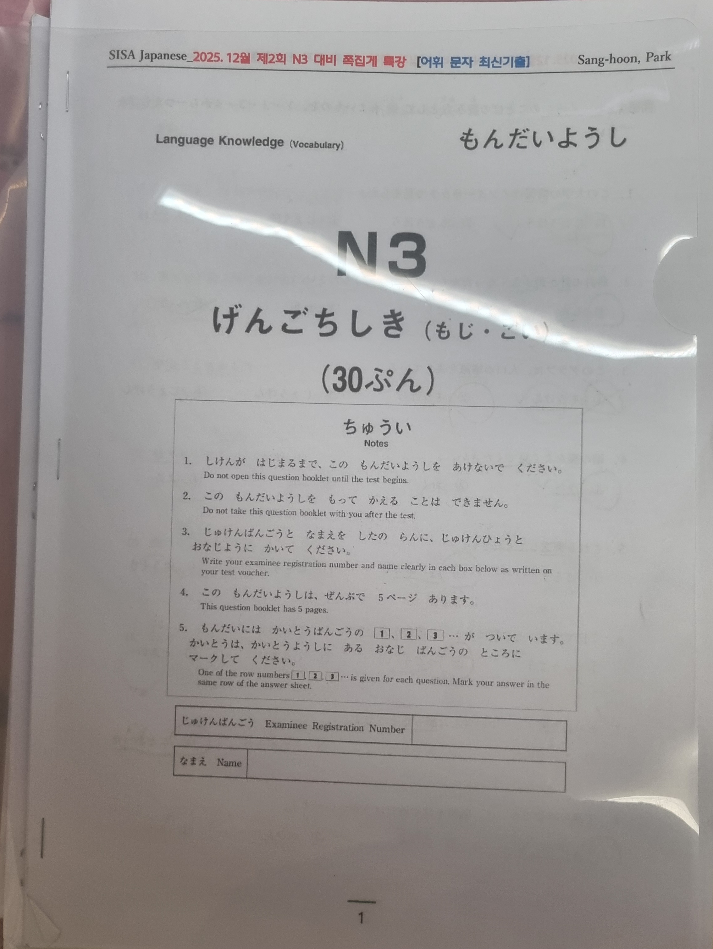 JLPT N3 - JLPT N3 종합반(매일반,100분,23회,12/5종강)