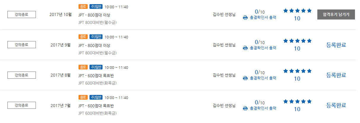 800점대 이상 목표반 - JPT 800대비반(월수금)